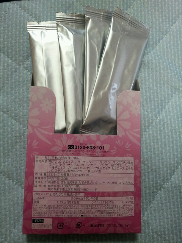 また、今回買ったのは、レスベラトロールの他に馬プラセンタも配合されたサプリメントになっており、肌にも良さそうです☆