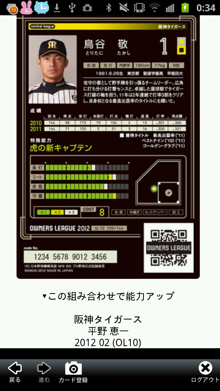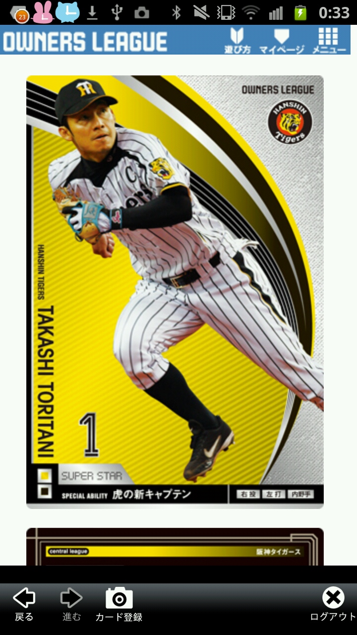 今日はオーナーズリーグのカード、阪神タイガースの鳥谷敬選手を紹介します♪